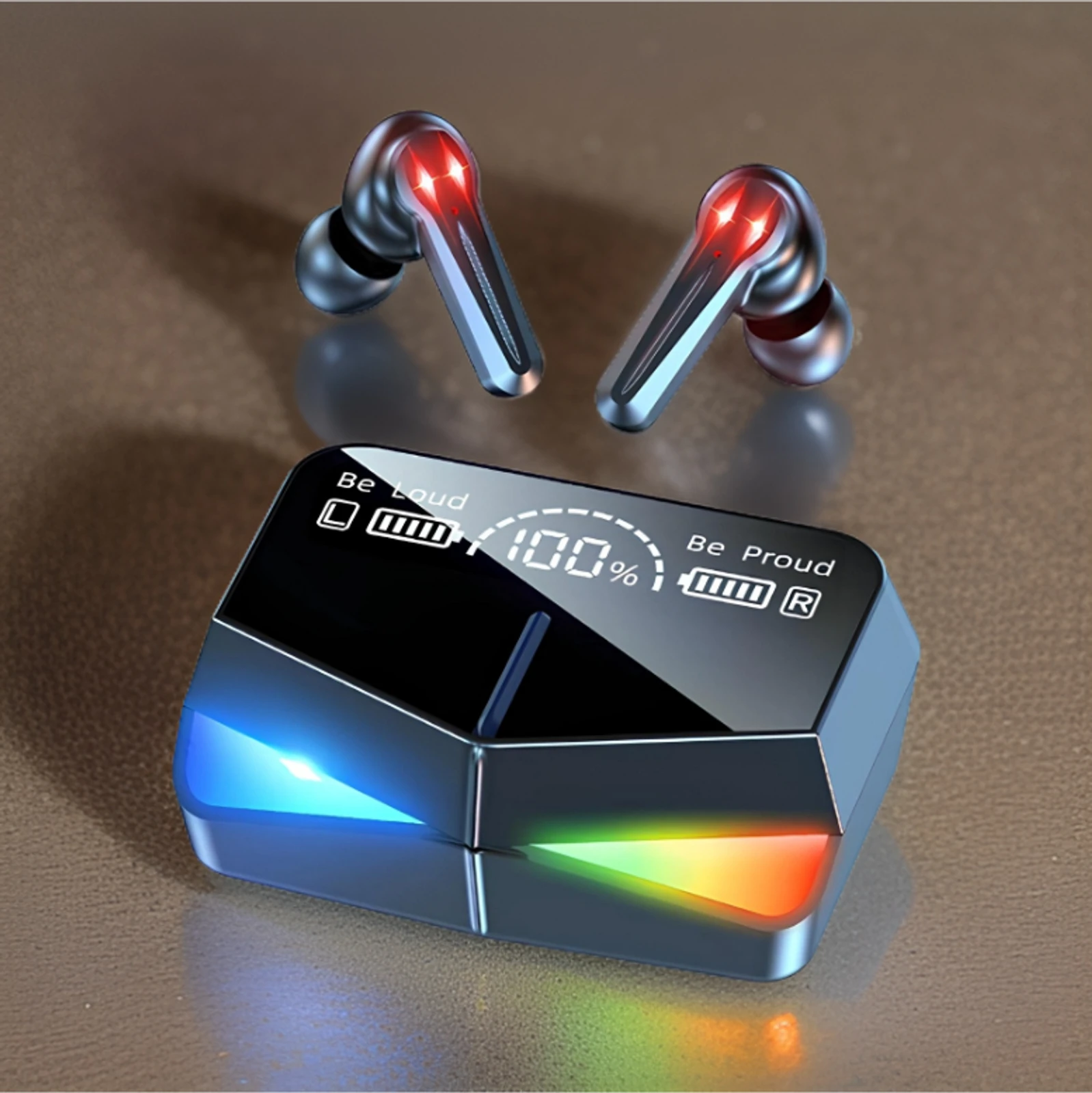 Stand out from the crowd with the eye-catching RGB lighting on both the earbuds and the charging case. The M28 TWS Gaming Earbuds feature a colorful atmosphere light that cycles through a spectrum of colors, adding a cool, gamer-centric aesthetic to your setup-5. The dynamic lights pulse in rhythm with your music, elevating your gaming experience.