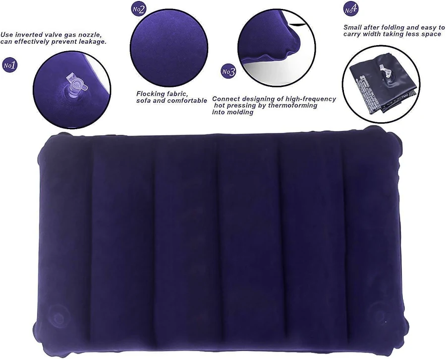 Easy One-Breath Inflation & Deflation: Forget pumps and complicated setups. Equipped with a high-flow, leak-proof valve, the pillow inflates in just 2-3 breaths.-2 Deflation is just as fast—open the valve, fold the pillow, and press out the air in seconds.– Some models even feature a one-way valve for quick, effortless use.-22