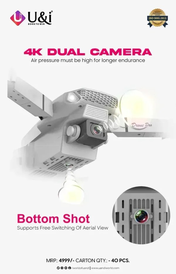 – **4K Ultra HD Camera:** Equipped with a high-resolution 4K Ultra HD camera, the U&I 998 PRO MAX captures breathtaking aerial photos and videos with incredible clarity and detail. Whether you’re filming landscapes, events, or adventures, your footage will look professional and vibrant.