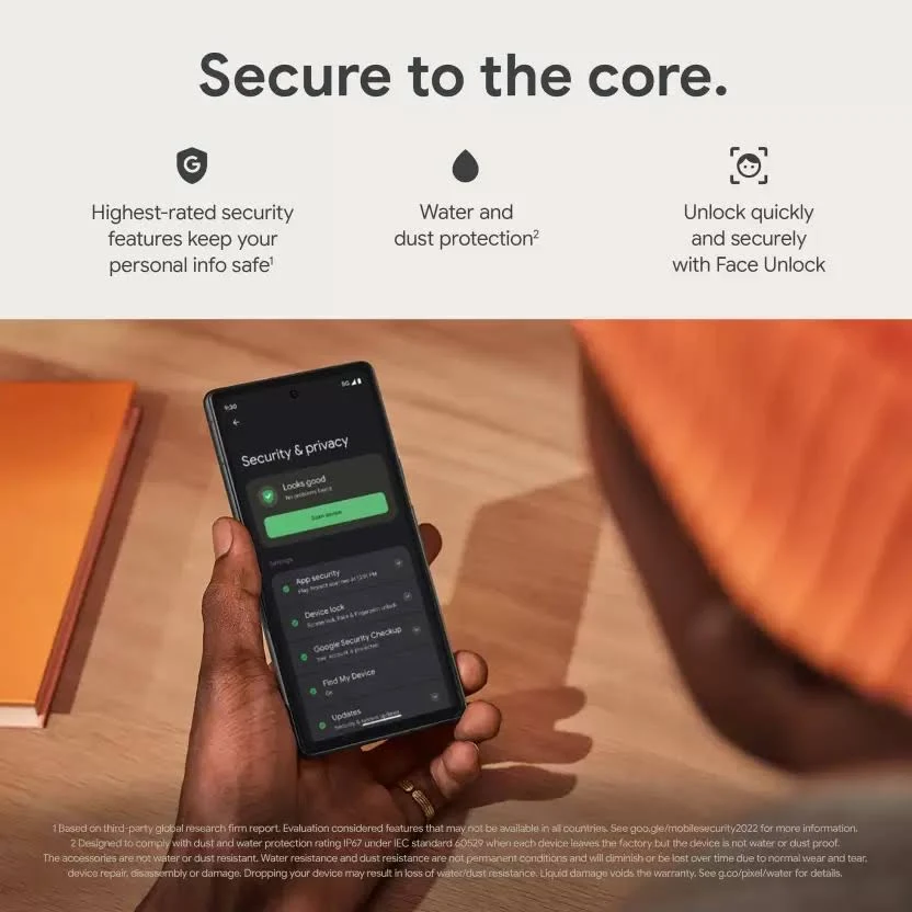 – **Water and Dust Resistance:** Rated IP67 for water and dust resistance, the Pixel 7A is designed to withstand the elements.