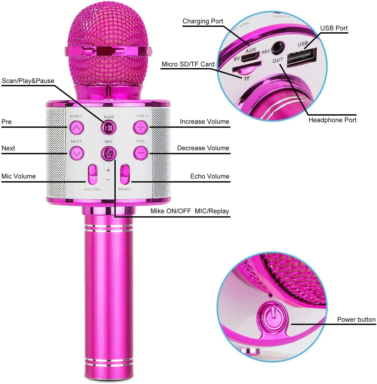 7. Speaker Function: Enjoy powerful sound output from the microphone’s built-in speaker, enhancing your singing experience and ensuring crisp audio.